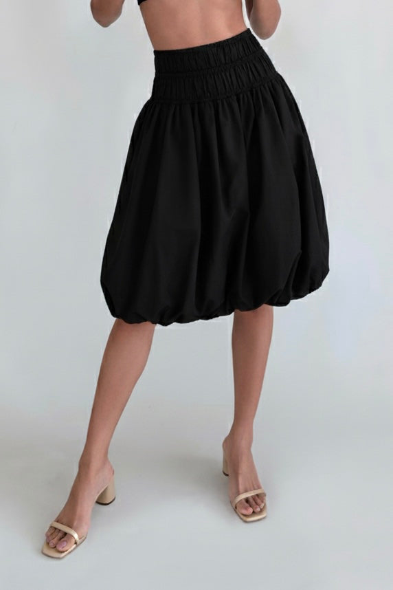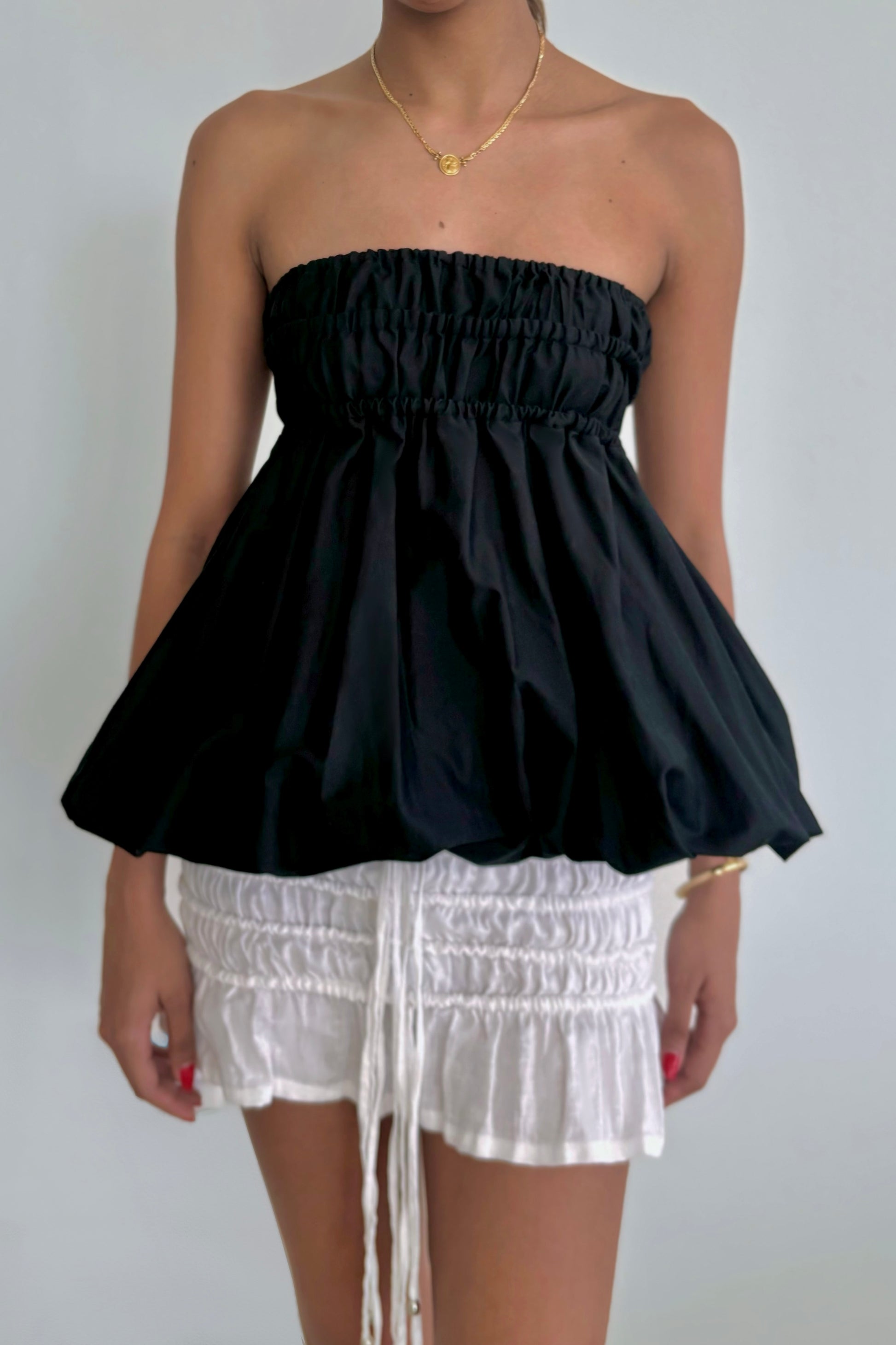 The 'Insideout is crafted in heavy cotton. The ruched part of the garment is elastic, allowing for a comfortable and versatile fit, making it possible to wear it as both a bottom and a top.