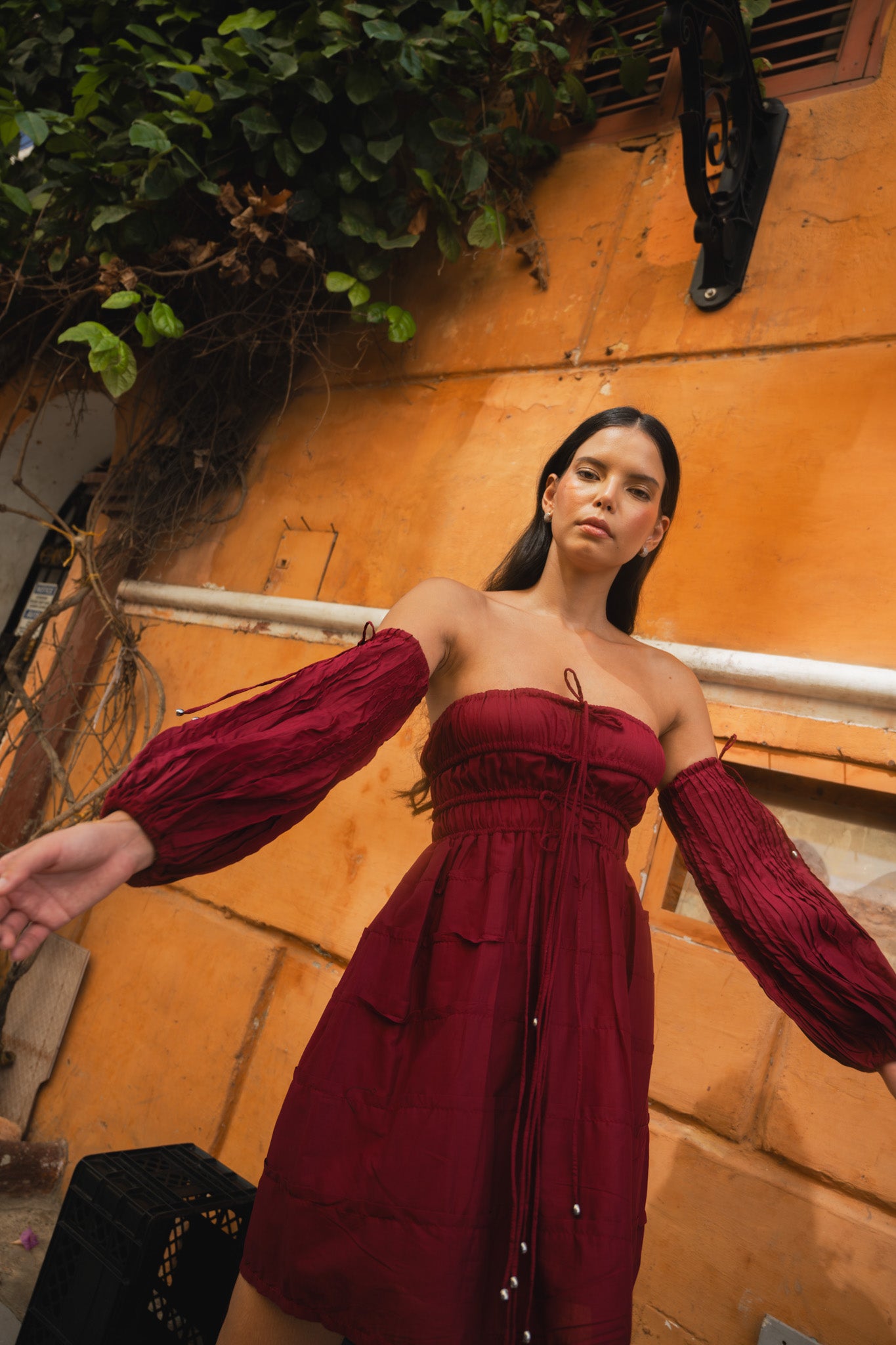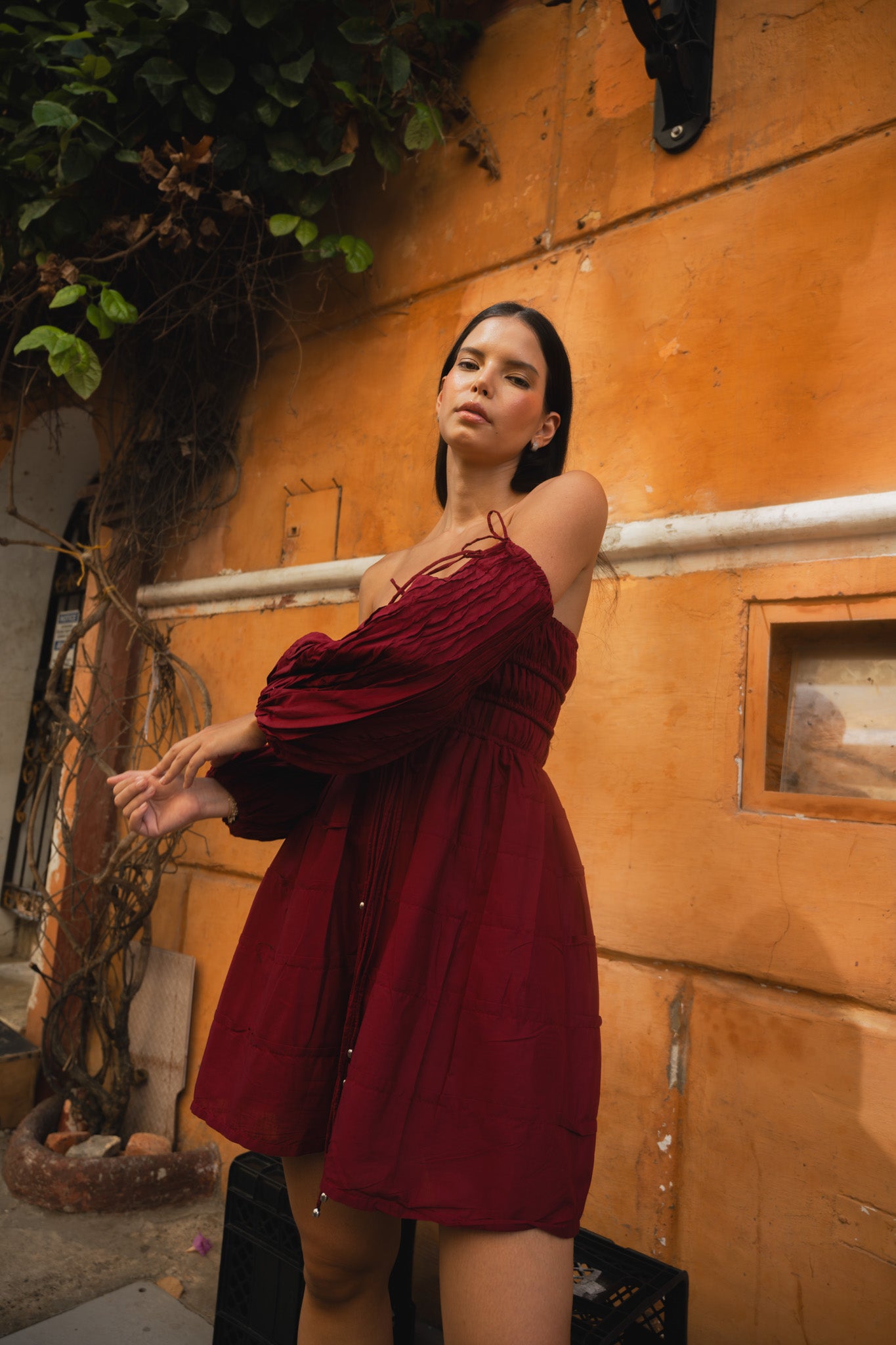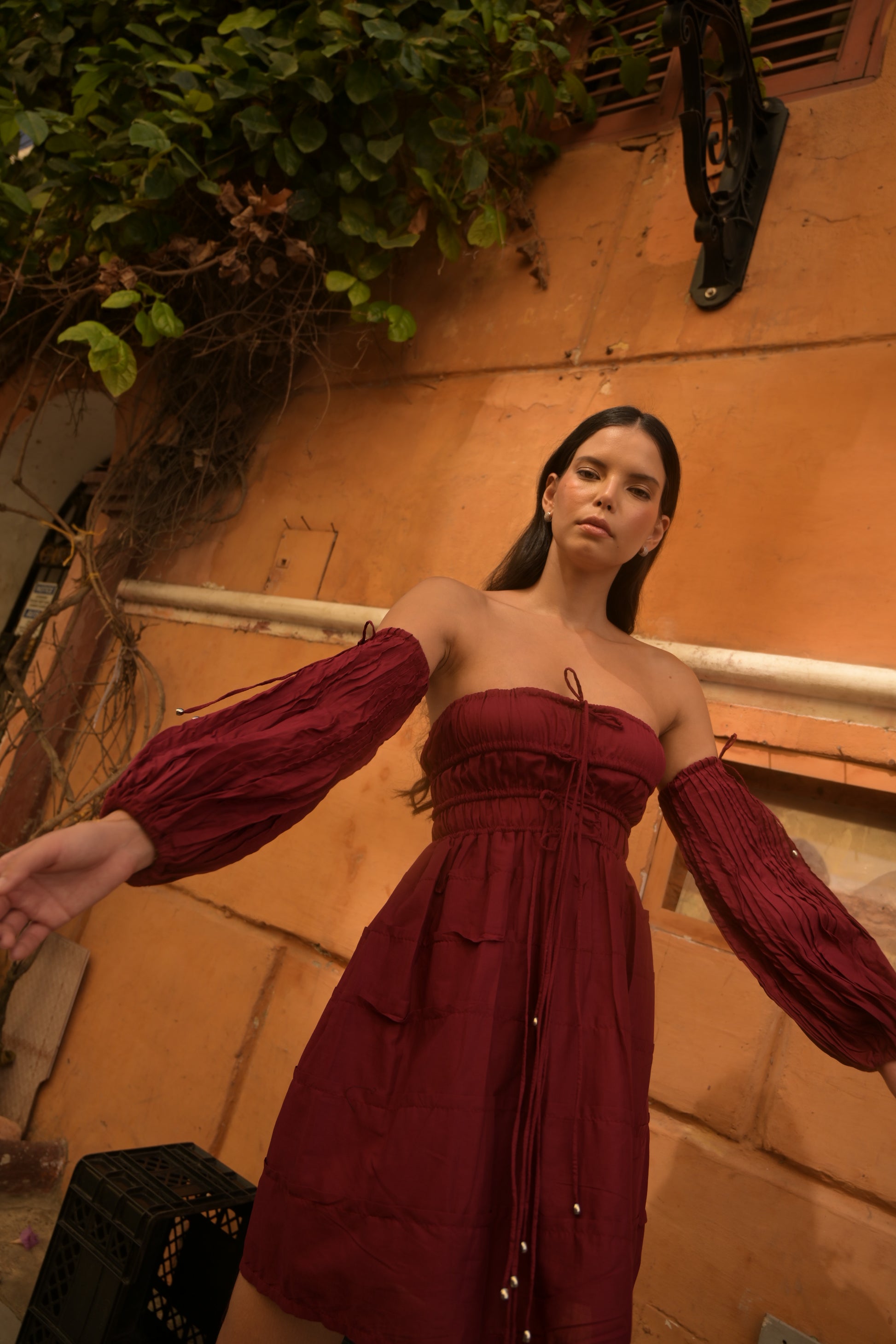 A 100% cotton piece defined by its intricate pintucks, running delicately across the entire garment. Its detachable sleeves are also covered in rows of fine pintucks, adding texture and artisanal detail. Designed for infinite versatility, it can be worn as a dress or transformed into a skirt, with or without sleeves. The soft elastic allows you to style it high under the bust, at the waist, or low on the hips; adapting seamlessly to your mood and silhouette.