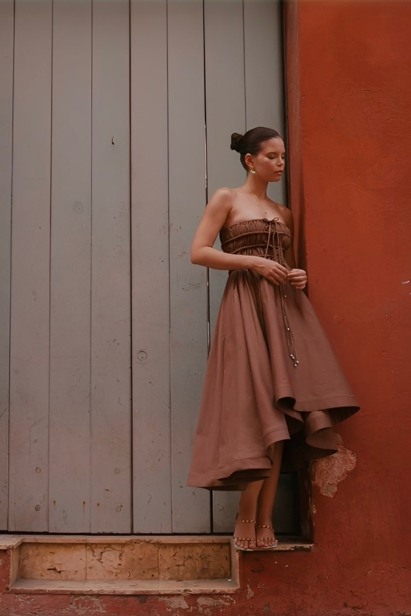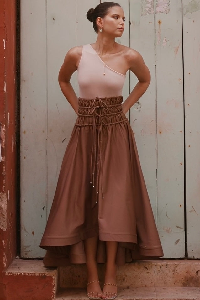 Inspired by the freedom and versatility of the modern woman, this multifaceted design piece is conceived as a canvas of inexhaustible style. Crafted from the purest cotton, its dynamic silhouette adapts to the figure thanks to our signature ruffle tunnels with elastic and delicate adjustable ties, allowing it to be worn in multiple ways: as a dress, a high-waisted skirt under the bust, at the natural waist, or as a low-rise skirt. It is a garment that transcends simple functionality to become a statement of elegance in motion, inviting you to explore femininity with audacity and comfort in every step.